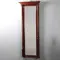 Imposante smalle en flink hoge spiegel in notenhout, twee ranke gedraaide zuilen flankeren het spiegelglas. Bekroond met een royale kroonlijst waar de zuilen als het ware onder staan.