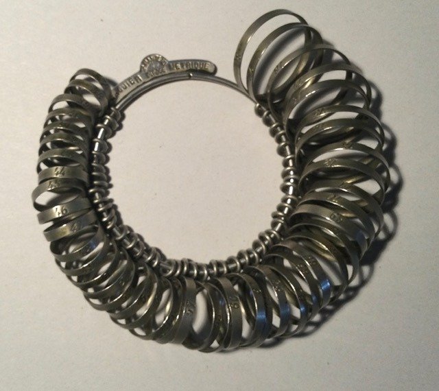 Deze ijzeren maten werdenvroeger gebruikt door juweliers maar zijn nu vervangen door kunststofmaten of elektronische apparatuur.
