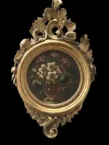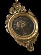 Prachtige houten lijst fijn uitgesneden met rollen, rollen en plantmotieven. Eerste helft 19e eeuw.