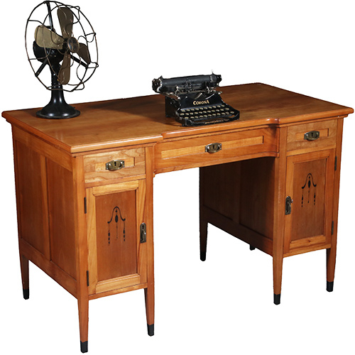Satijnhouten bureau met zwarte accenten Hollands ca 1910