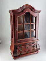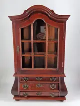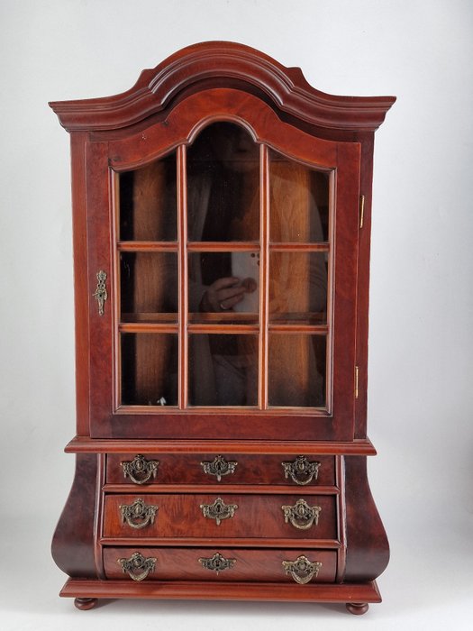 Het grootste deel van de kast is gemaakt van massief mahoniehout, een ander deel is gefineerd.
