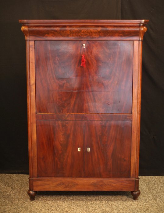 Mahonie secretaire met mahonie kersenhouten interieur.