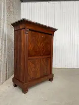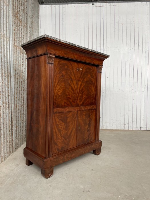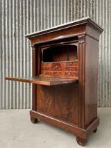 Zeer zware kwaliteit in allle onderdelen,, blind hout, fineer, leder, vverguld messlinng, sloten, scharnieren en marmer.