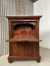 Strak model, zeer fraai bloemmahonie gefineerd met massief messing entreé's. Het iinterrieur ook wel "nest" met vollle en half volle gezwarte pilaren alllen voorzien van messing (verguld) kapitelen.