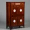 In het front vier cirkelvormige ornamenten die de winter, de lente, de dag en de nacht symboliseren. In de lade een smal reliëf met figuren.