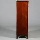 Achter de klep een zeer fraai afgewerkt interieur met 8 laden, een deurtje, 6 postvakken en twee grote opbergvakken. In de klep een schrijfvlak ingelegd met laken.