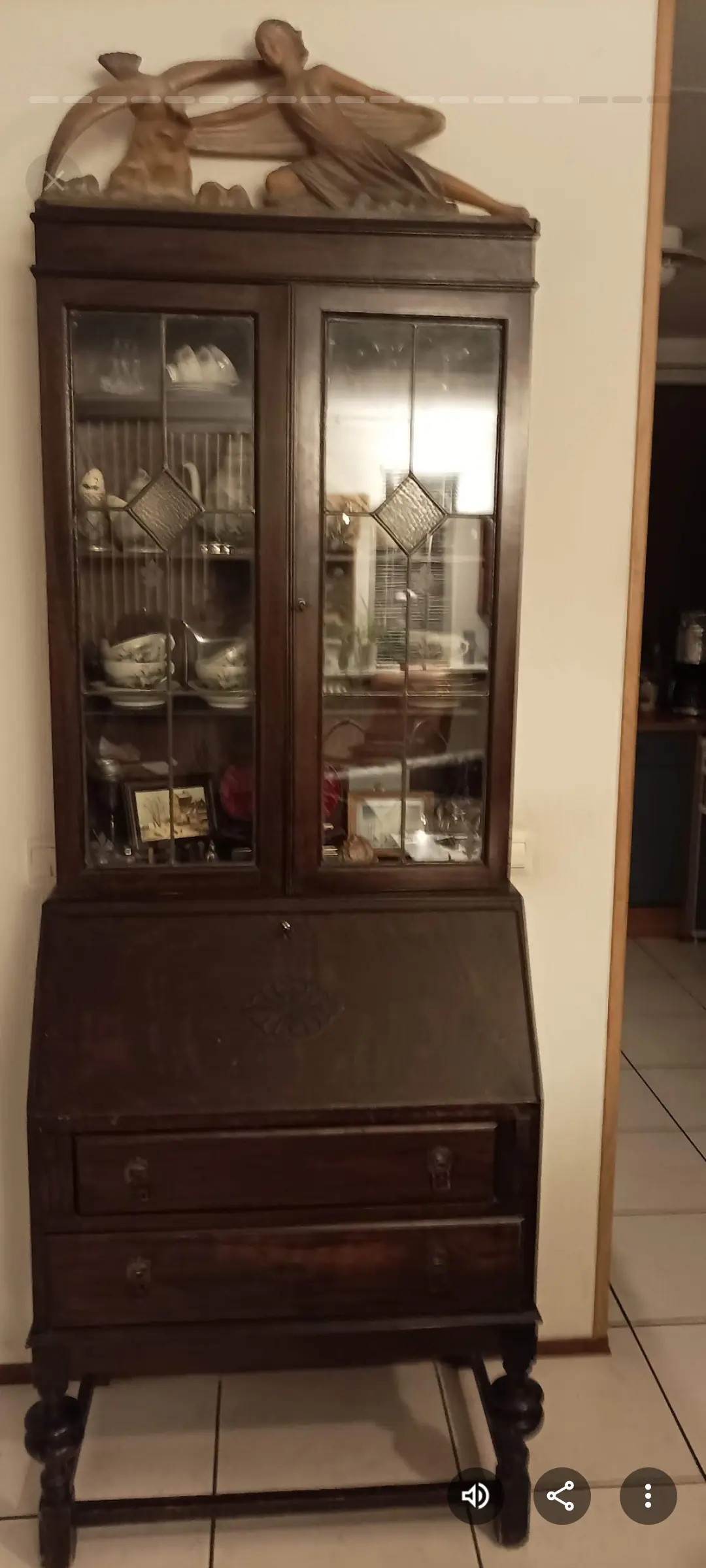 Mooie Pine houten Secretaire met opstal.