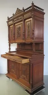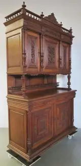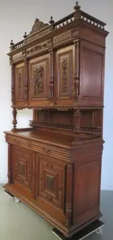 Op de voorzijde van deze kast zijn maar liefst vijf hoornen des overvloeds afgebeeld.