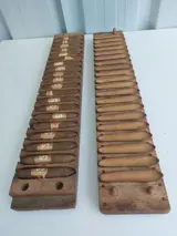 Er is een groot ingedrukt merkteken in het hout met verschillende gegevens.