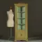 Smalle hoge Louis Seize hoekkast in salie- en residagroen ca 1800