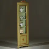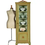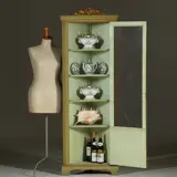 Smalle hoge Louis Seize hoekkast in salie- en residagroen ca 1800
