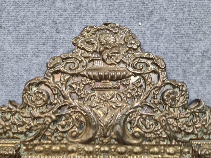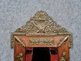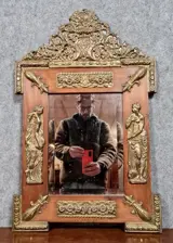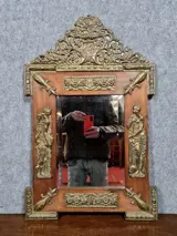 Zeldzame spiegel in renaissancestijl in getint natuurlijk hout en repoussékoper rond 1850