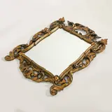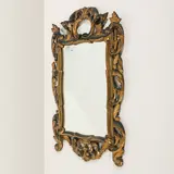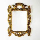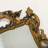 Spiegel in verguld snijwerk. Gesneden en verguld houten frame met botanische elementen, in goede algehele staat. 88,5x62 cm. De achterkant is vervangen door een nieuwe.