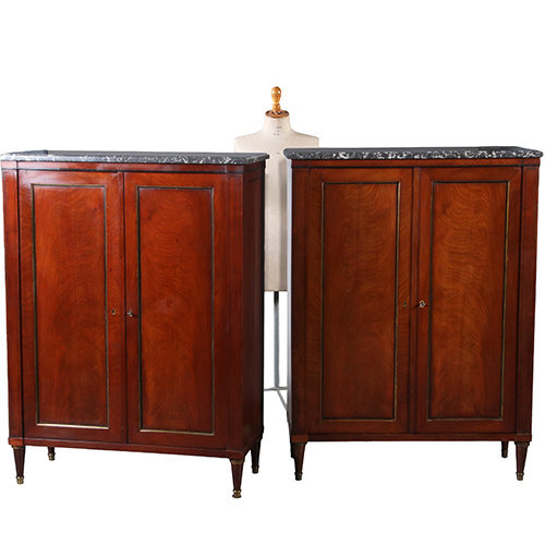 Stel van 2 identieke 2-deurskasten met marmeren blad Frankrijk ca 1830
