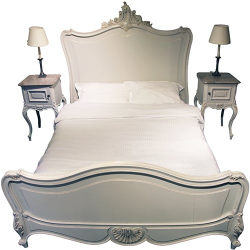 Frans Luis Seize stijl witgelakt Ledikant met twee nachtkatjes, links- en rechtsdraaiend.