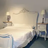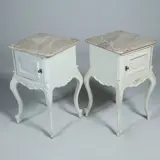 Stel van 2 wit gelakte nachtkastjes met ledikant Frankrijk ca 1880
