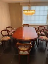 19e eeuw tafel maar de stoelen zijn nieuw.