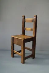 Unieke artisanale sidechair. Eenvoudig maar goed doordacht ontwerp. Datering geschat ca. 1850.Zeer mooi gepatineerd. Deels met pen gat verbindingen, de zitting is later verstevigd (wel oude spijkers) Mooi in Wabi Sabi interieur of in minimalistische/eclectische of vintage stijl.