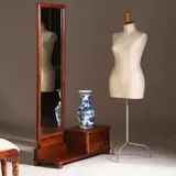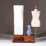 Strakke chique draaibare facet geslepen passpiegel halspiegel art deco in notenhout frame met 2 laden