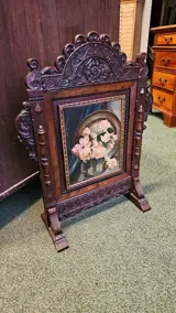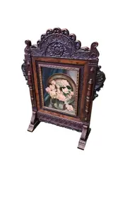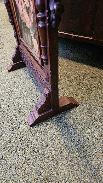 Een rijk bewerkt en beschilderd notenhouten tafelscherm.