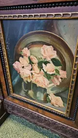 Een op linnen geschilderd stilleven van bloemen ( geen signatuur )