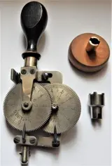 Deze draagbare toerenteller heeft aan één uiteinde een houten handvat. De punt van het andere uiteinde wordt tegen het uiteinde van de as gedrukt waarvan de omwentelingen worden geteld. In het midden zitten twee wielen. Wanneer het onderste wiel eenmaal draait, beweegt het bovenste wiel een tiende van zijn omtrek. De randen van beide wielen zijn verdeeld in 100 gelijke delen. Elke tiende divisie is genummerd.