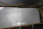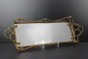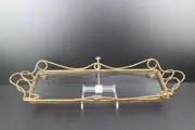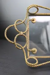 Antiek touwachtig dienblad plateau met glazen bodem.