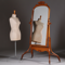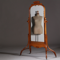 Engelse laat Victoriaanse passpiegel met overduidelijk Thonettiaanse invloeden. Fraai breed geslepen facet, onder de gebogen pootjes kleine wieltjes. De spiegellijst is bekroond met een gestoken kuifje met florale motieven is desgewenst afneembaar.