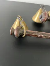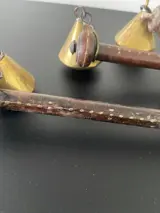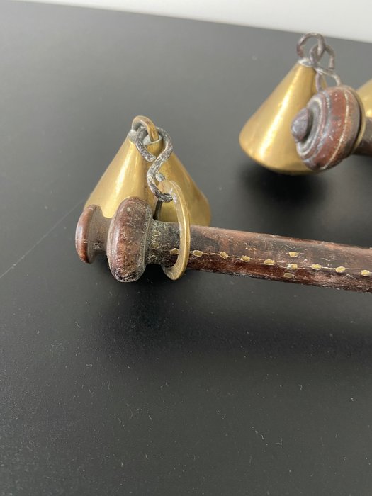 Antieke eikenhouten unster (3x) (stokbalans) of weegstok met massief messing onderdelen.
