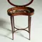 Dit tafeltje is in goede staat en in een mooie oude kleur. Het inlegwerk op de pootjes is vervaagd in de patinering die over de jaren is opgebouwd. Het velours is ook zichtbaar op leeftijd maar beslist in een aantrekkelijke verouderde staat. Het kan desgewenst worden vervangen door een bekleding naar wens, prijs in overleg en afhankelijk van materiaal. Het houtwerk in een mooie bescheiden glans en met zeer geringe gebruikssporen. Geen schades of defecten.