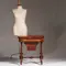 Rijk uitgevoerde en prachtig ingelegde Victoriaanse Speeltafeltje en werktafeltje ineen. Het wortelnoten gefineerde bovenblad ingelegd met een ebbenhouten band met daarin een slingerende bladrank in hulsthout waarmee ook de inleg is afgezet in dunne lijntjes.