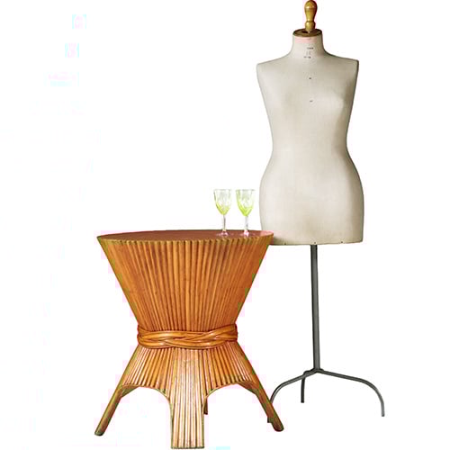 Vintage/jaren ’70 bijzettafel in bamboe in zeer fraaie oude kleur en gaaf door de tijd gerold. Komen ook voor in een uitvoering met een dichte voet en dan voorzien van een groet glasplaat als eetkamertafel.
