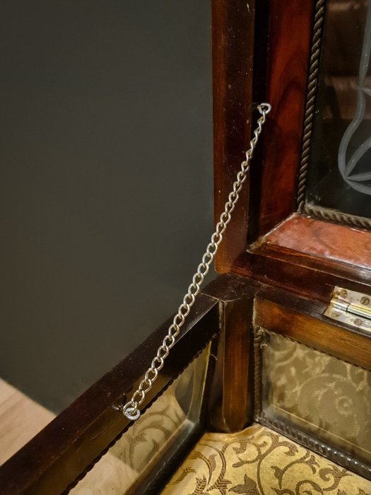 Oude vitrinekast in Lodewijk XV-stijl, begin 1900, gemaakt van bois de rose, het heeft verguld brons, met handbeschilderd glas met een bloemmotief, binnenin is er een gouden damaststof, over het algemeen in uitstekende staat van bewaring.