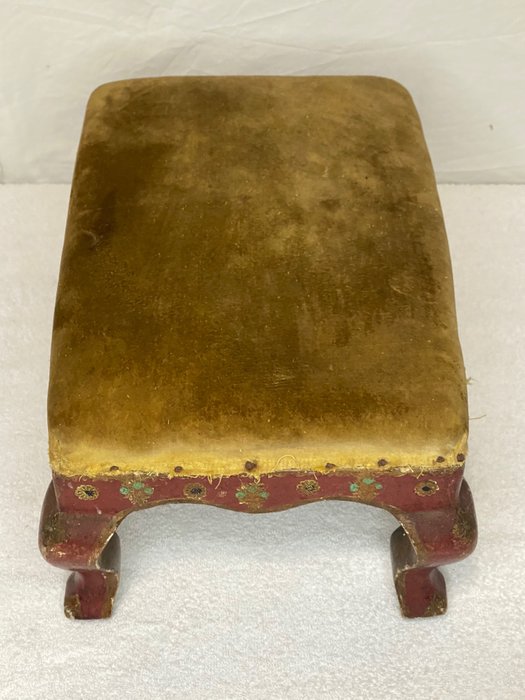 Schitterende voetenbank, kruk uit de tweede helft van de 19e eeuw. Afkomstig van een Florentijns landgoed. Gevonden in een schuur. Artikel is alleen schoongemaakt. Origineel.