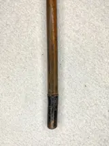 Antieke houten wandelstok met benen inzetstuk aan de basis van het handvat en koperen punt.