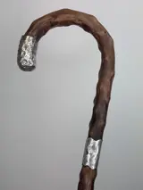 Een prachtige wandelstok gemaakt uit hagedoorn, hawthorn zoals de Engelse het noemen. Hhet is een stok uit midden 19e eeuw en heeft een zilveren gedreven band en is Engels sterling (925/1000) gekeurd; Londen, 1908