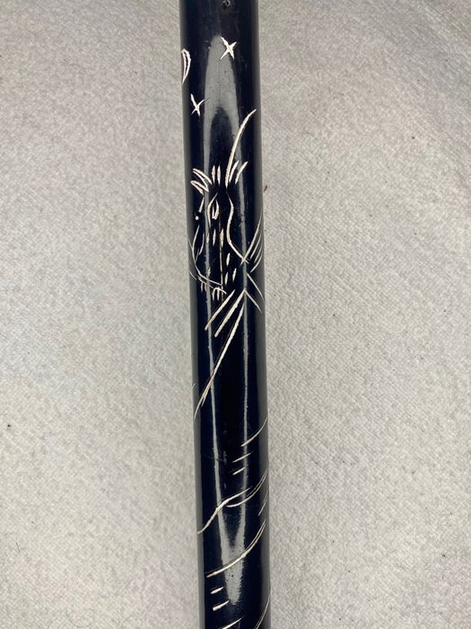 Antieke houten wandelstok, handgemaakt, met handgemaakte gravures en versieringen