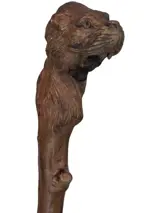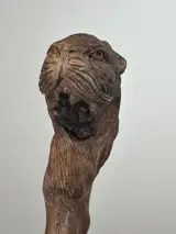 Een knoestig houten wandelstok, gemaakt uit één stuk hout met als greep een otter.