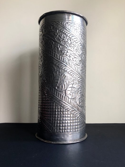 Elegante en decoratieve stokhouder in metaallegering met prachtige bloemengravures, ideaal voor wandelstokken en als decoratief object in stijlvolle woonkamers.