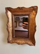 Te koop een zeer verfijnde spiegel in verguld geperforeerd hout.