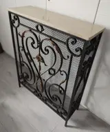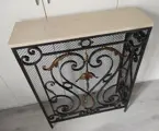 Sublieme console, oude radiatorbekleding in smeedijzer en marmer uit de jaren '20.