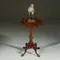 Hollands mahoniehouten bijzettafeltje of wijntafeltje het geschulpte en geprofileerde blad op een gedraaide stam, uitlopend in een viersprant met dynamisch gevormde hoog terug buigende poten eindigend in een fijn gesneden klauwpootje.