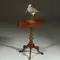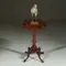Hollands mahoniehouten bijzettafeltje of wijntafeltje het geschulpte en geprofileerde blad op een gedraaide stam, uitlopend in een viersprant met dynamisch gevormde hoog terug buigende poten eindigend in een fijn gesneden klauwpootje.
