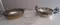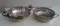 1 Slakommen / broodtrommels, merk WMF met glazen bak met polybolvormige rand, in zilver metaal met geometrische gravures en twee handvatten, WMF O/X struisvogel I/O stempel, het zilverplaatje wat sleets, zie foto's.