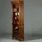 Zeer hoge notenhouten open boekenkast in Historisme eind 19 e eeuw 2 e , de zijstijlen met platte pilasters tot heuphoogte daarboven gedraaide zuilen onder een overstekende kroonlijst. De zijkanten met panelen. Het geheel op gedraaide bolpoten.