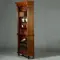 Zeer hoge notenhouten open boekenkast in Historisme eind 19 e eeuw 2 e , de zijstijlen met platte pilasters tot heuphoogte daarboven gedraaide zuilen onder een overstekende kroonlijst. De zijkanten met panelen. Het geheel op gedraaide bolpoten.