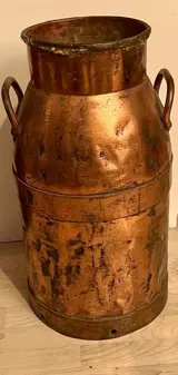 Een zeldzame vondst, deze koperen melkcontainer is gemaakt van zeer dun koper.