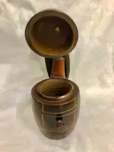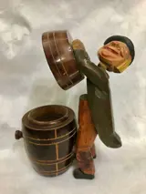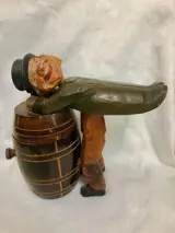 Deze heer is duidelijk de hele nacht in de war geweest! Hij leunt op een vat, terwijl hij gekleed is in zijn hoge hoed en staart. Als je op de achterkant van zijn staart drukt, staat hij op en tilt hij het deksel van het biervat op om de inhoud van de container te onthullen. Zijn hoofd wiebelt om te benadrukken hoe dronken hij is elke keer dat je de dispenser opent.