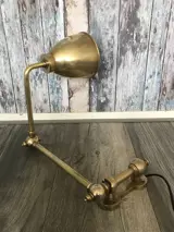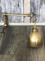 In zeer mooie staat verkerende zware messing scheepslamp, gebruikt bij het lezen van kaarten. De lamp heeft twee scharnierpunten, waardoor hij goed boven de kaart is te positioneren. De binnenzijde van de kap is wit voor een beter schijnsel. De lamp is volledig gaaf.