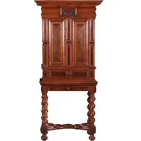 Hollands bureau ingelegd met sterren ca 1700 een fabuleuze blikvanger Gesloten een ingetogen bureau en geopend een zeer uitbundig rijk ingelegde blikvanger... Hollands Bureau ook wel Cantoor of Pupitrum genoemd, in eikenhout met een schrijfblad met zwart leer. De binnenkant van klep en deuren zeer uitbundig ingelegd met geweldige mooie ster, kruis en geometrische vormen. Achter de deuren en klep veel kleine laden, het geheel rijk ingelegd met o.a. wortelnoten, ebben, mahonie, purperhart en kerse ...